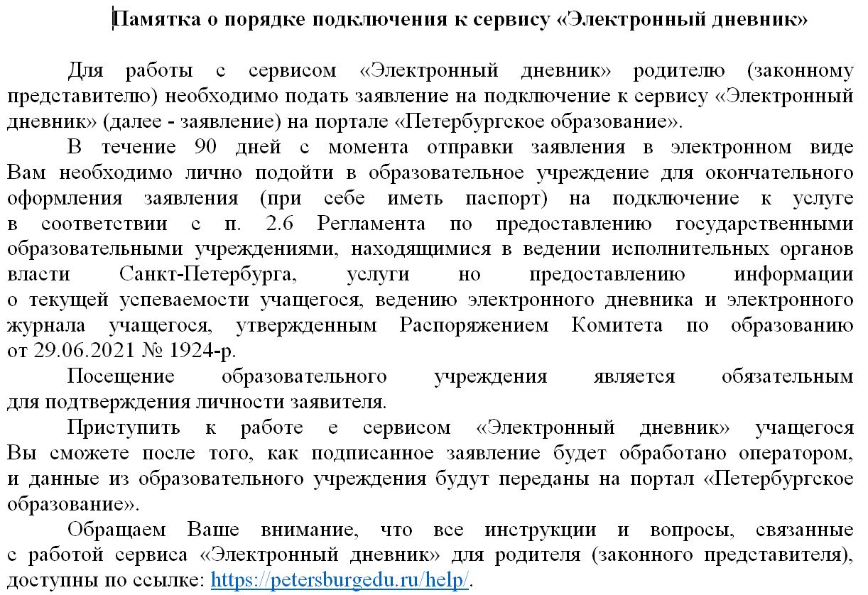 Обращаем Ваше внимание, что ведение Электронного дневника и Электронного журнала является государственной услугой Санкт-Петербурга, обеспечивающей оперативное, надежное и безопасное информирование родителей и обучающихся о ходе обучения.