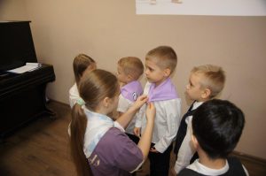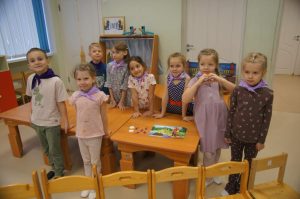 27 октября воспитанники подготовительных групп «Ручеёк» и «Мечта» встретились со своими наставниками из лицея. Наставники познакомили ребят с проектом «Орлята России», дошколята познакомились с ценностями и девизом Орлят. Дошколята приняли решение тоже стать Орлятами-дошколятами и пообещали гордиться своей Родиной, ценить дружбу, дружно вместе делать добрые дела, уважать старших и заботиться о младших, держать слово и поступать по чести и совести. На торжественной церемонии посвящения наставники повязали Орлятам-дошколятам галстуки, вручили удостоверение и подарили поделку, которую дошколята сделали уже в группах, закрепив знания о ценностях Орлят России.
