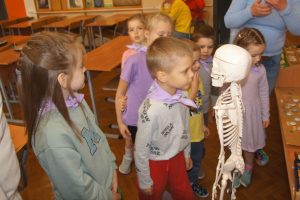 30 октября воспитанники подготовительных групп «Ручеёк» и «Мечта», посетили школу с экскурсией. Ребята посетили пожалуй самые интересные учебные классы и ничего что, сидя за партой, ноги не достают до пола зато как интересно увидеть что-то новенькое. В кабинете биологии Игорь Вадимович познакомил дошкольников с различными видами животного мира, было занимательно рассматривать насекомых, не боясь что укусят, и коллекцию ракушек и бабочек, а самое интересное было посмотреть на скелет человека. Хозяйка библиотеки Юлия Николаевна поиграла с ребятами в игру «Берегите книжки» и даже познакомила с детскими журналами. Чудо какие интересные, сделанные школьниками игрушки, показала и даже дала поиграть Юлия Александровна в кабинете робототехники. Как всегда, самым загадочным оказался кабинет химии, где Анастасия Евгеньевна показывала различные волшебные опыты и даже научила проводить свой опыт, который вызвал бурю эмоций. Спортивный зал поразил ребят своим размером. Но никто даже не ожидал увидеть в кабинете труда настоящую кухню, которую показала Ольга Александровна. Большое спасибо Оксане Петровне и всем учителям за интересную экскурсию, которая оставила в душе дошколят желание прийти в школу учится.