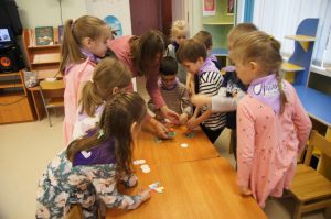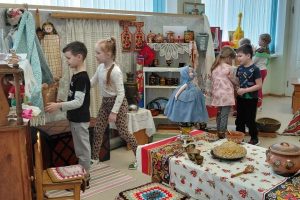 Начиная с 1 ноября и всю короткую неделю воспитанники вместе со своими воспитателями знакомились с национальностями России. Воспитатели старшей группы «Ласточка» в преддверии праздника «День народного единства» подготовили для своих воспитанников мультимедийную презентацию, чем помогли им расширить представления о государственных праздниках России. Закрепить знания о символах России помогли настольные игры «Наша Родина Россия», «Символы России», созданные руками воспитателей. Всю неделю ребята играли в подвижные игры — «Крепкие цепи России», которая символизирует мощь и единство многонационального народа и любимую русскую народную игру «Золотые ворота», а также познакомились с подвижными играми народов Калмыкии и татар «Загони овец в кошару» и «Тюбетейка». В подготовительной группе «Ручеёк» подбирали национальные костюмы для кукол, старались определить и подобрать какие предметы быта могут принадлежать какому народу России.