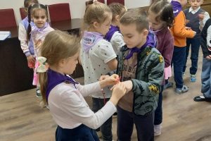 29 января состоялась новая встреча Орлят-дошколят со своими наставниками. В рамках модуля «Дружба Орлёнка — дошколёнка» наставники подготовили замечательные игры на сплочение, дошколята с большим удовольствием поиграли и повеселились, искали различные цвета на одежде друг друга, собирали команды с различным количеством человек, делали домики для друга, а в заключении повязали друг другу ленточку дружбы и получили традиционные подарки.