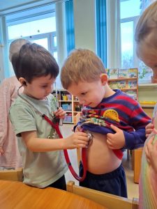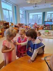4 февраля в гости к воспитанникам средней группы «Сказка» приходил настоящий врач — это была мама Ярославы! Она рассказала ребятам как важно беречь здоровье, соблюдать режим дня, заниматься спортом, а также, есть полезные продукты и гулять на улице. Ребята узнали почему страшные прививки полезны и как важна работа врача. Самое интересное было рассматривать медицинские инструменты и даже пробовать их в применении. Очередное знакомство с профессиями родителей оставило положительные эмоции у малышей. От всей души благодарим Анастасию Александровну за познавательный досуг!