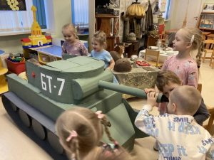 26 января воспитанники подготовительной группы «Мечта» посетили школьный музей. Ребята с интересом слушали рассказ экскурсовода про 3-ю стрелковую дивизию народного ополчения Фрунзенского района и про работу поискового отряда «Следопыт». Больше всего понравилось ребятам держать в руках некоторые экспонаты такие как предметы быта военных и даже оружие. Большое спасибо Наталье Евгеньевне за увлекательную и очень познавательную экскурсию.
