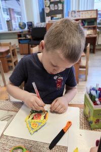 Весь декабрь Орлята — дошколята в рамках модуля «Добро Орлёнка — дошколёнка», совершали добрые дела, помогали воспитателям творить новогоднее чудо — украшали группу, наряжали новогоднюю ёлку не только в группе, но и самодельными игрушками в холе 1-го этажа, создавали зимние картины, готовили подарки родным и изготавливали вместе с родителями поделки для выставки «Мастерская Деда Мороза».